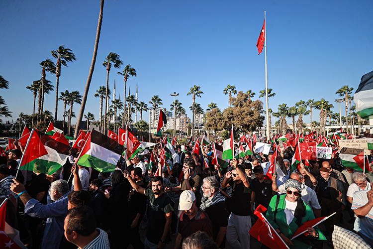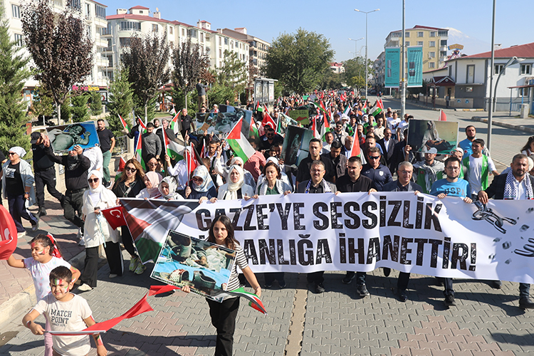 El-Aksa Platformu ve bazı sivil toplum kuruluşlarının öncülüğünde İzzet Paşa Camisi önünde toplanan kalabalık, taşıdıkları Filistin bayrakları ve pankartlarla, Gazi Caddesi’nden Cumhuriyet Meydanı’na kadar yürüdü.