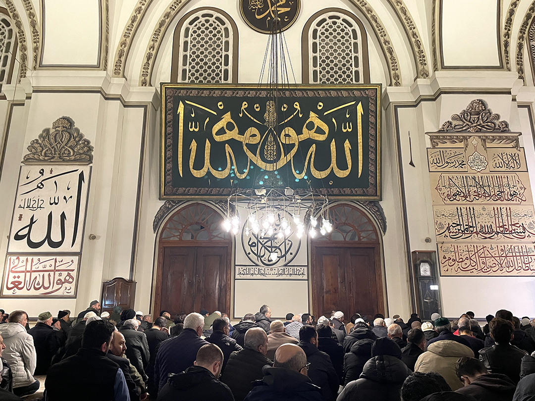 Camide, akşam namazını eda eden vatandaşlar, hep bir ağızdan ilahiler okudu.