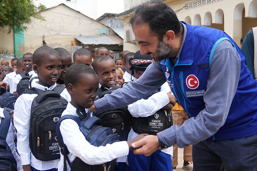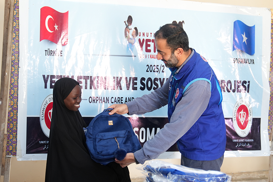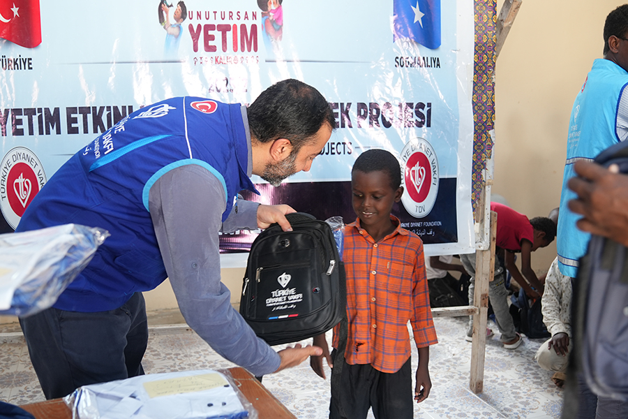 Türkiye Diyanet Vakfı’nın “Yetim Etkinlik ve Sosyal Destek Projesi” kapsamında Somali’de kısıtlı imkanlarla eğitim öğretimlerine devam eden yetim öğrencilere içerisinde kırtasiye gereçlerinin bulunduğu birer okul çantası ve okul üniforması ulaştırıldı.